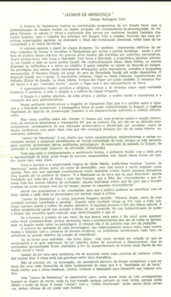 A peça Leonor de Mendonça retrata o casamento sem amor entre D. Jaime, Duque de Bragança, e Leonor, sua esposa. D. Jaime, um homem ressentido por ter abandonado sua vocação religiosa, mantém uma relação fria e formal com Leonor, que vive isolada, tendo apenas sua camareira, Paula, como confidente. A trama ganha intensidade com o jovem Alcoforado, que desenvolve um amor platônico por Leonor.
